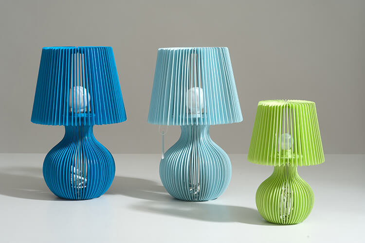 Ručno rađena, manjih dimenzija, lako prenosiva, prozračna, stabilna, dobro osvjetljava i štedi energiju. Jedan model, dvije veličine (medium, large) i devet osnovnih boja. Izaberite svoju kombinaciju lampe od recikliranog kartona.