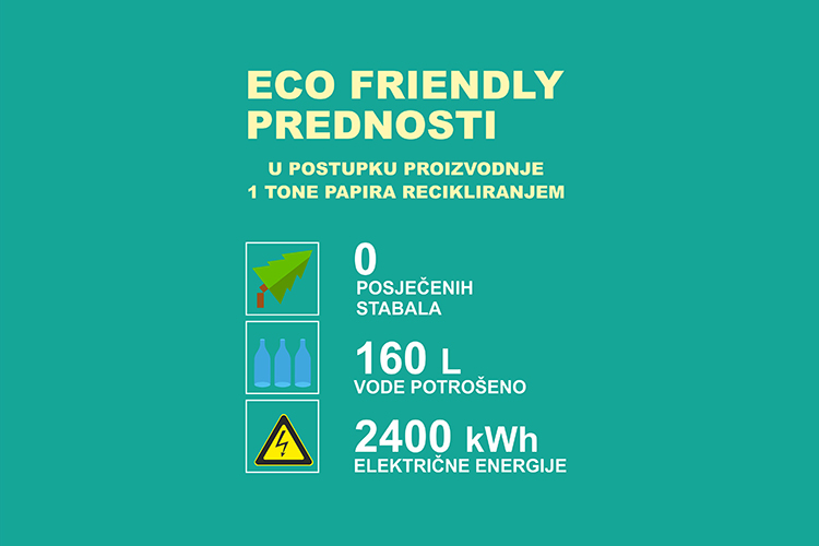 Za proizvodnju 1 tone papira klasičnim načinom proizvodnje sasječe se 17 zdravih stabala, potroši 200.000 litara vode i 4600 kWh električne energije. Rezultat usporedbe je jasan a uštede u prirodi velike.